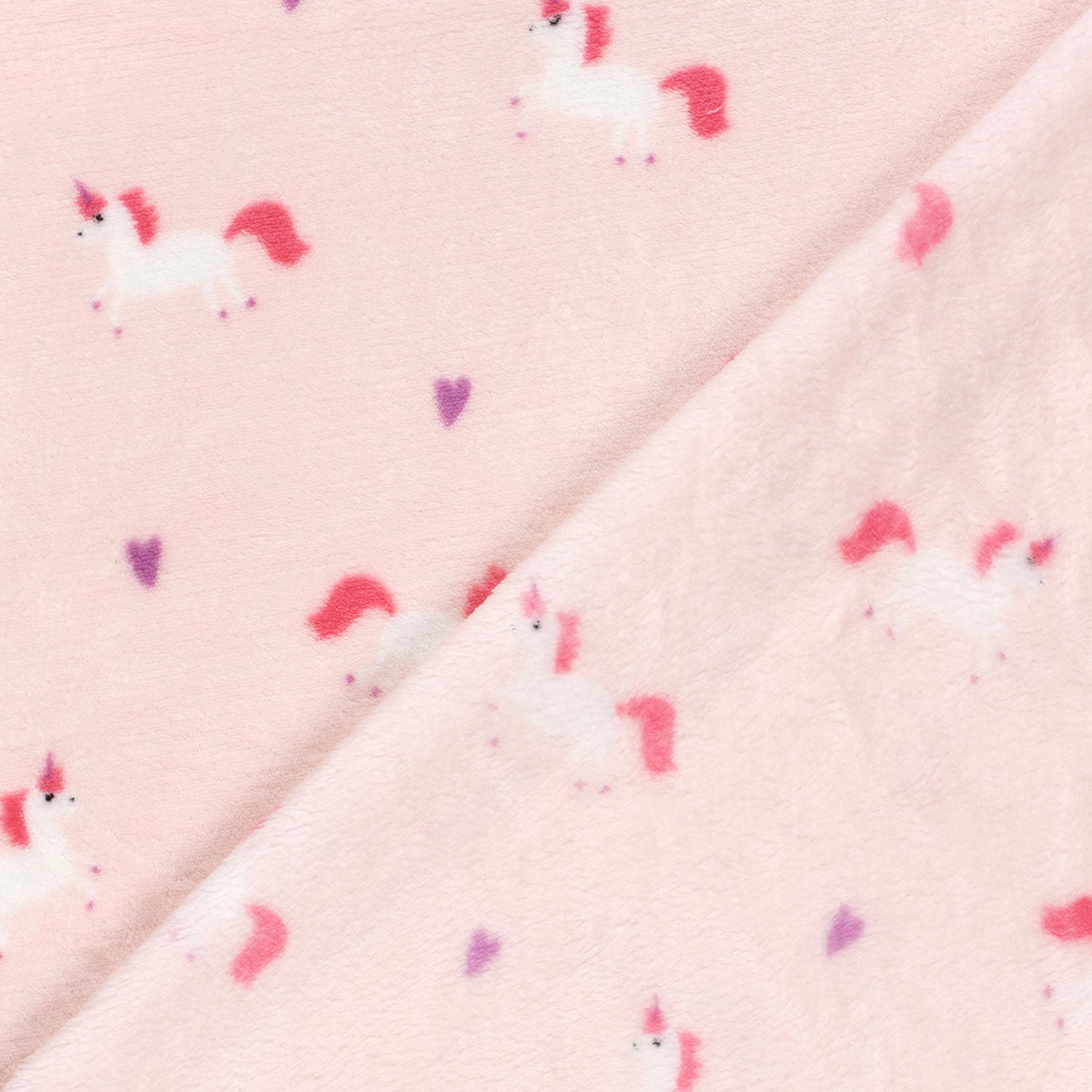 Wellness fleece Stoff bedruckt mit einhörner in der Farbe rosa (Artikel-Nr. 22420/012), ist Teil unserer kinderstoffe-Kollektion. Dieser Stoff hat eine Breite von 150cm und ein Gewicht von 240g/m