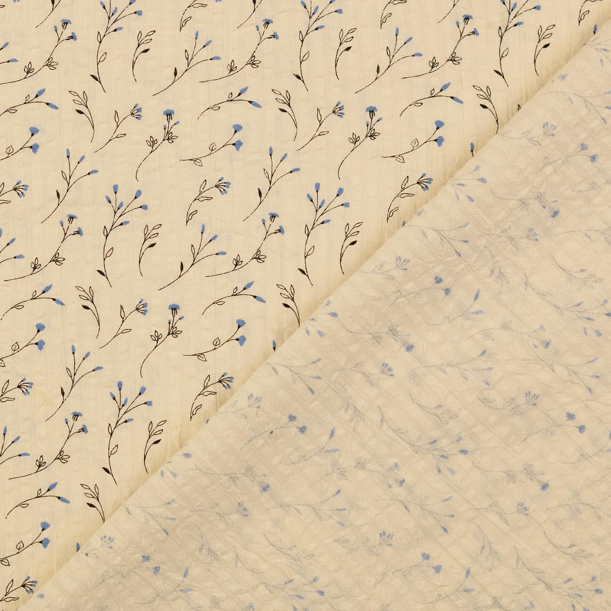 This beautiful pink seersucker flowers fabric (art.nr. 210834.0018) is part of our children fabrics collection. It has a width of 142cm and weight of 120g/m2.