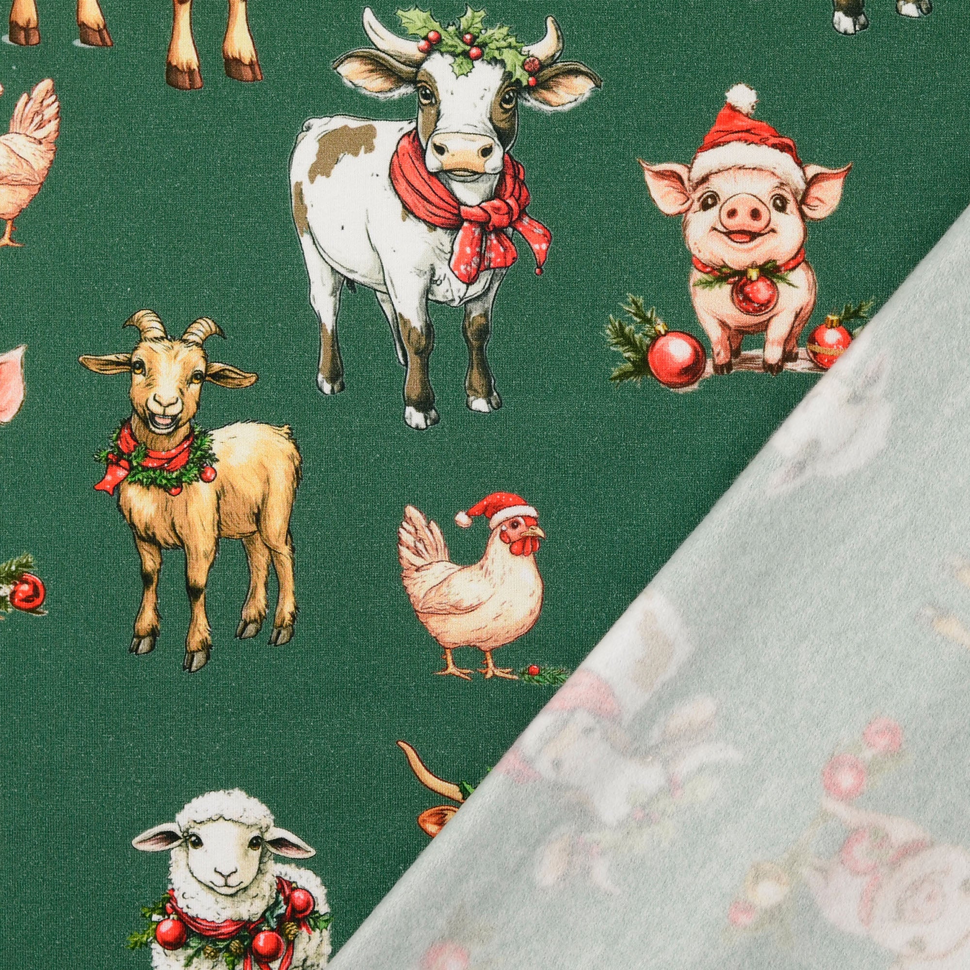 This superb forest green digital printed french terry animals fabric (art.nr. 212180.0006) is part of our christmas collection. It has a width of 158cm and weight of 250g/m2.