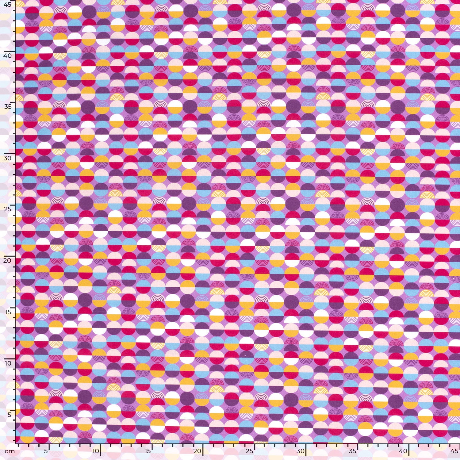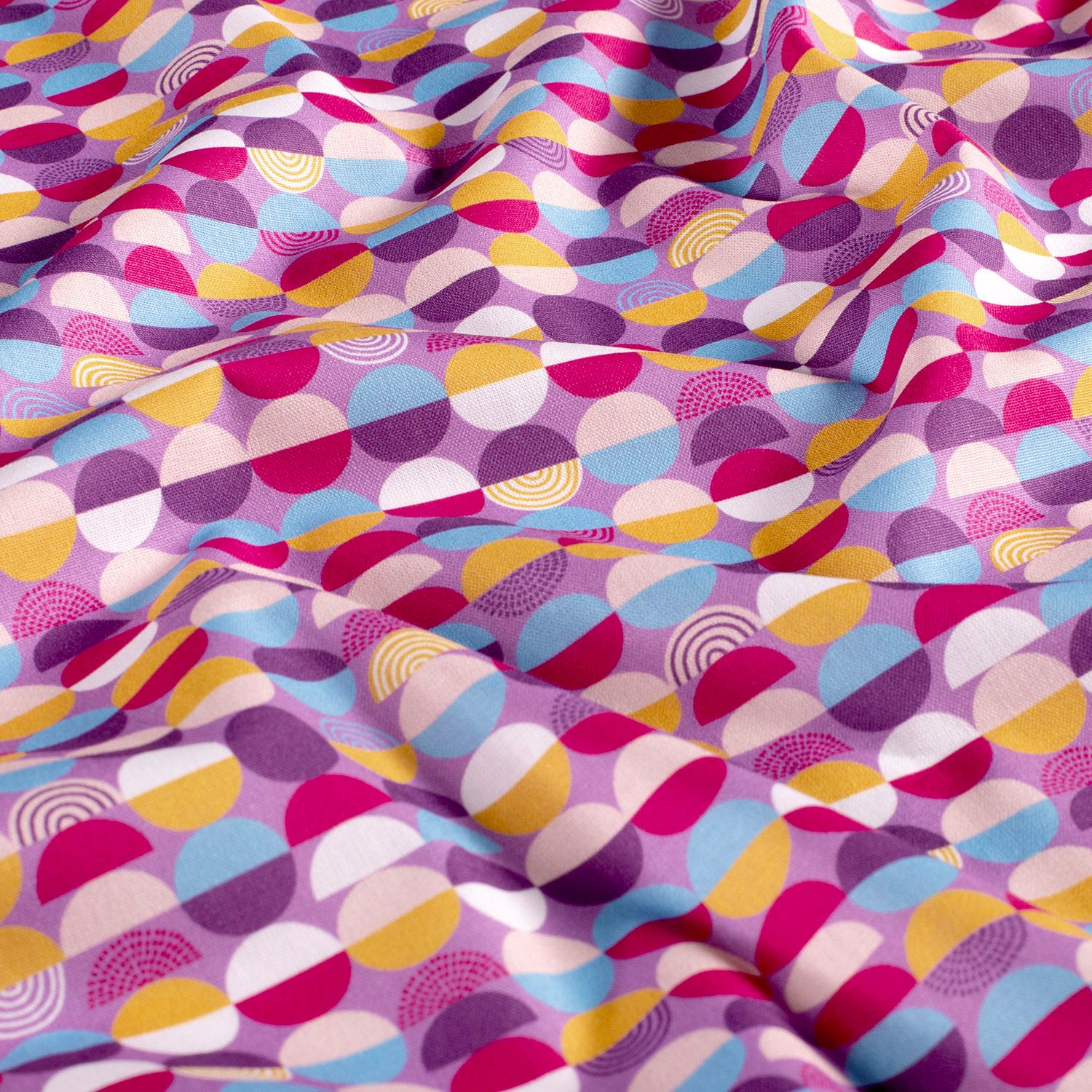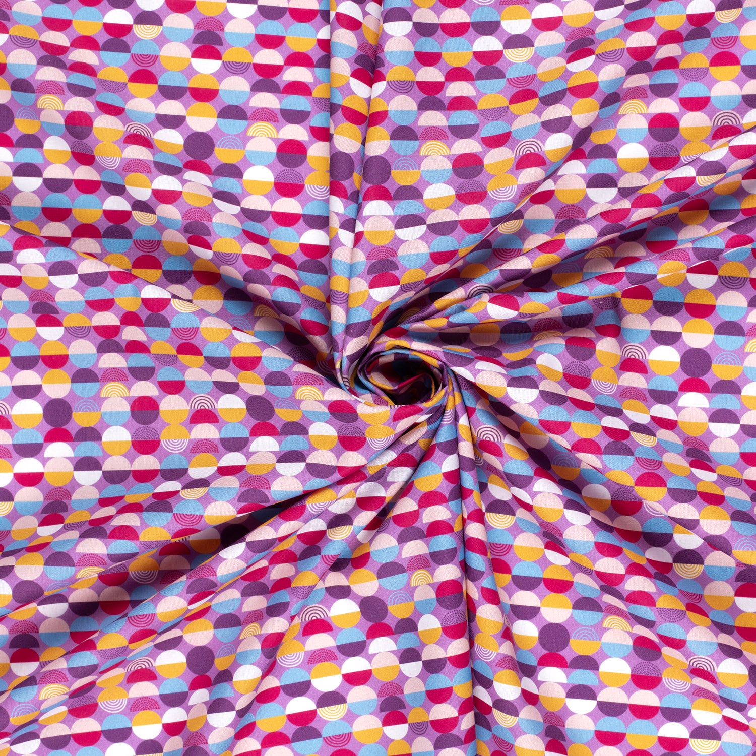 Baumwolle popeline Stoff bedruckt mit kreise in der Farbe lila (Artikel-Nr. 21975/043), ist Teil unserer kinderstoffe-Kollektion. Dieser Stoff hat eine Breite von 145cm und ein Gewicht von 110g/m