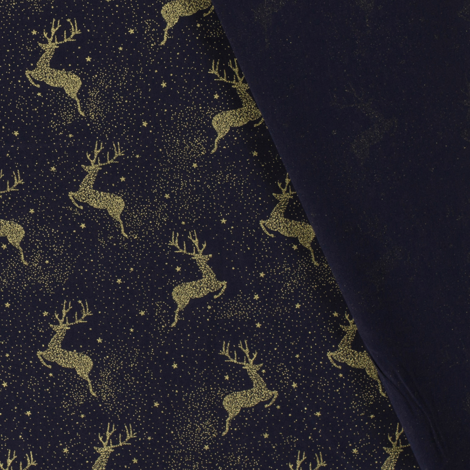 Baumwolle Popeline Stoff bedruckt und foliendruck Weihnachten Marine