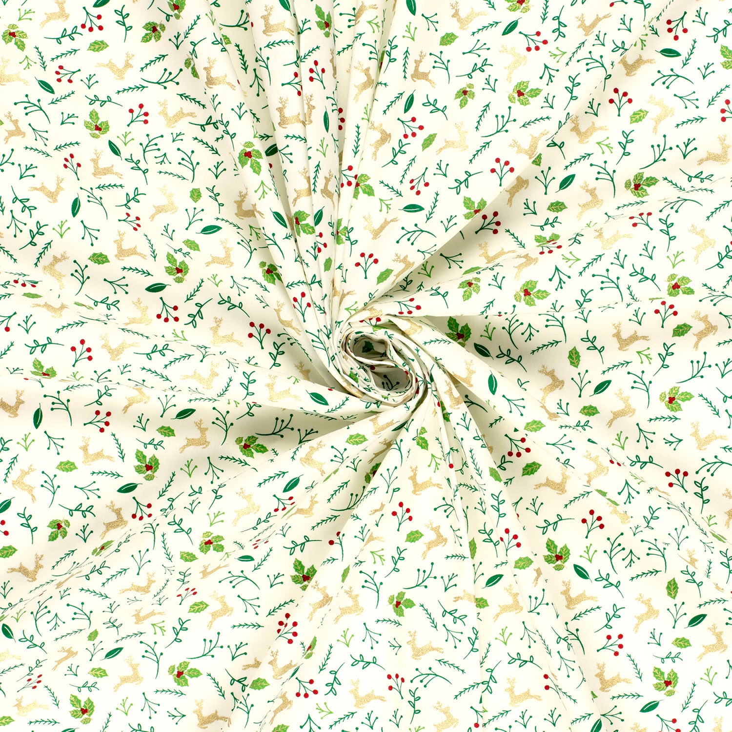 Baumwolle popeline Stoff bedruckt und foliendruck mit hirsche in der Farbe wollweiß (Artikel-Nr. 22702/051), ist Teil unserer dekorationsstoffe-Kollektion. Dieser Stoff hat eine Breite von 145cm und e