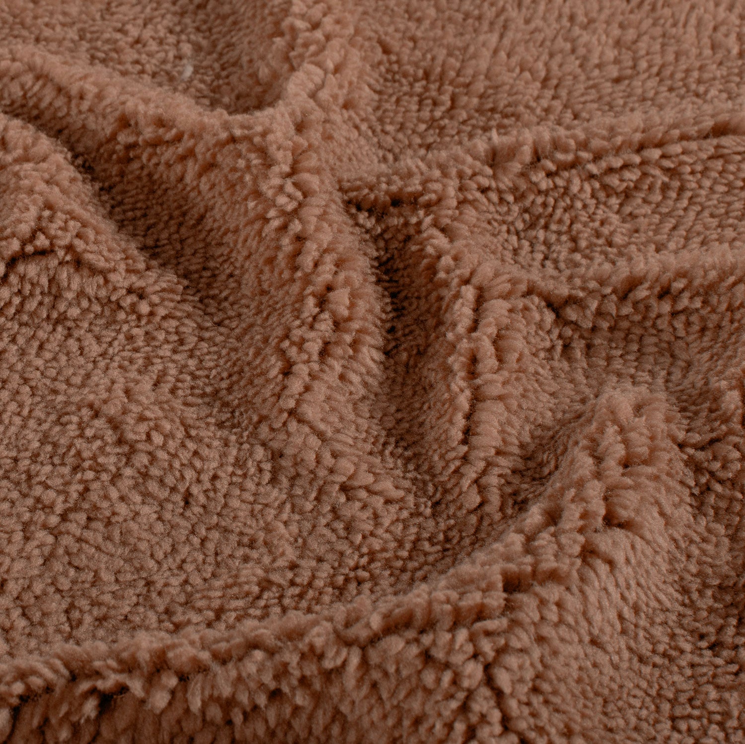 Sherpa fleece Stoff mit uni in der Farbe kamel (Artikel-Nr. 18494/153), ist Teil unserer babystoffe-Kollektion. Dieser Stoff hat eine Breite von 150cm und ein Gewicht von 200g/m2.