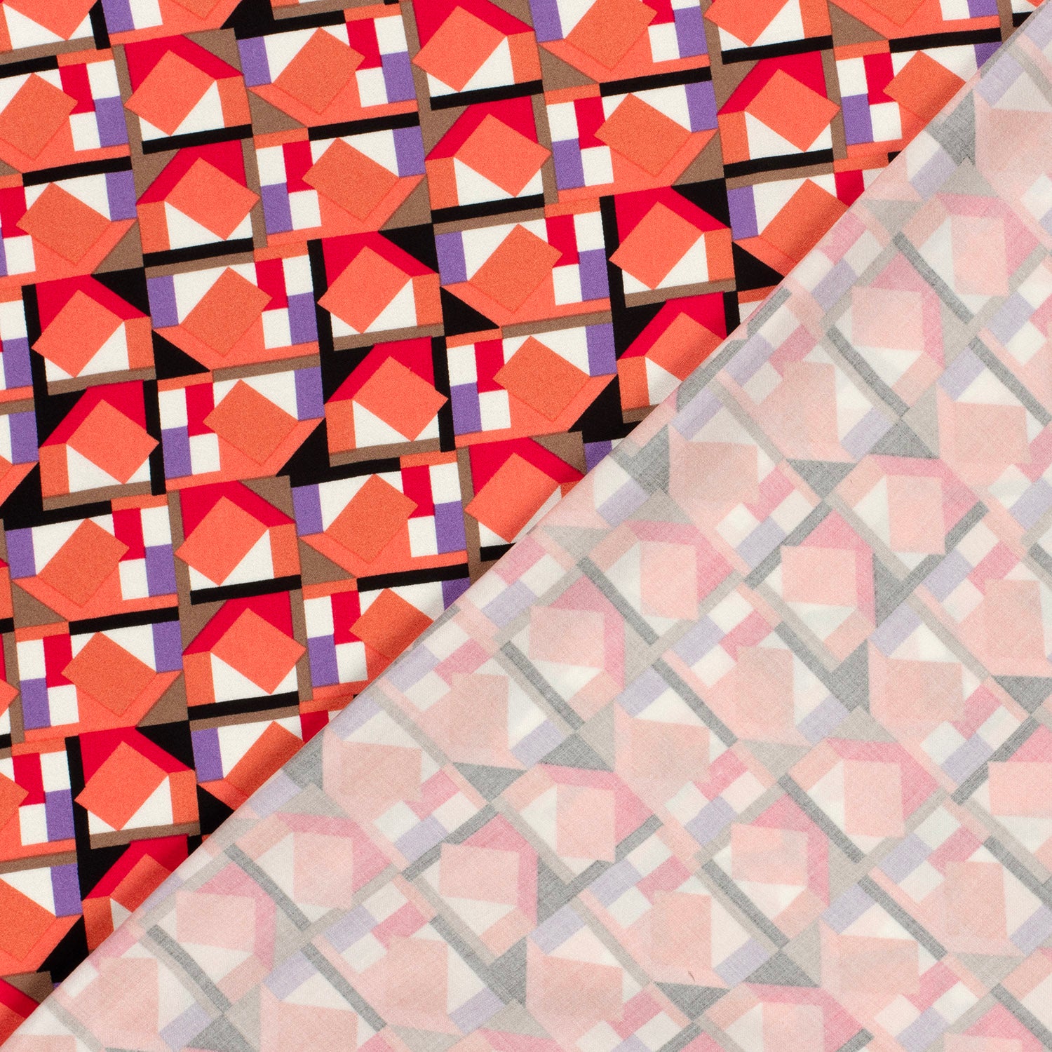 Viscose Satin Stoff bedruckt Abstrakt Coral
