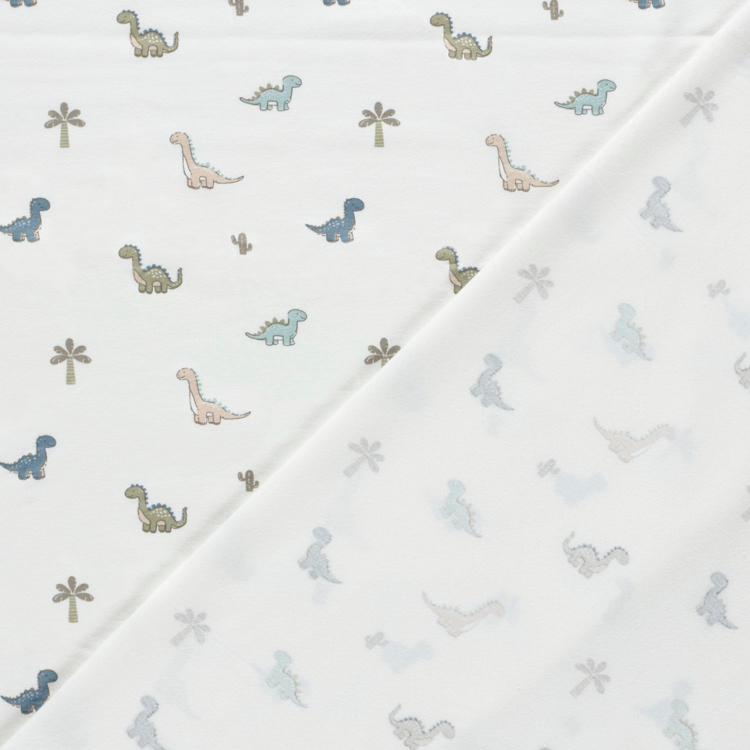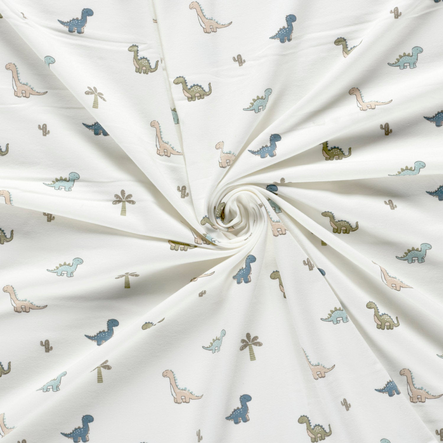 Jersey de Coton tissu imprimé dinosaures Blanc cassé