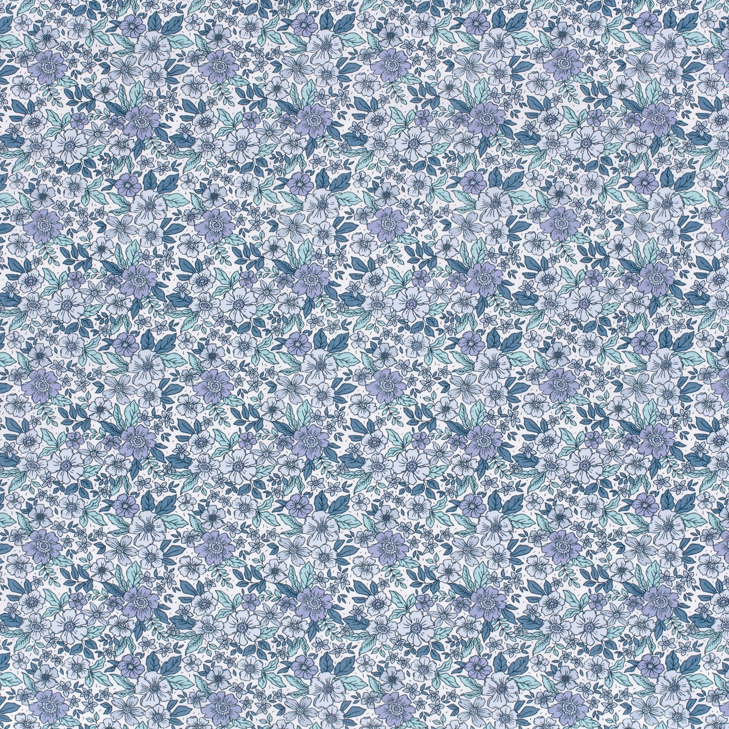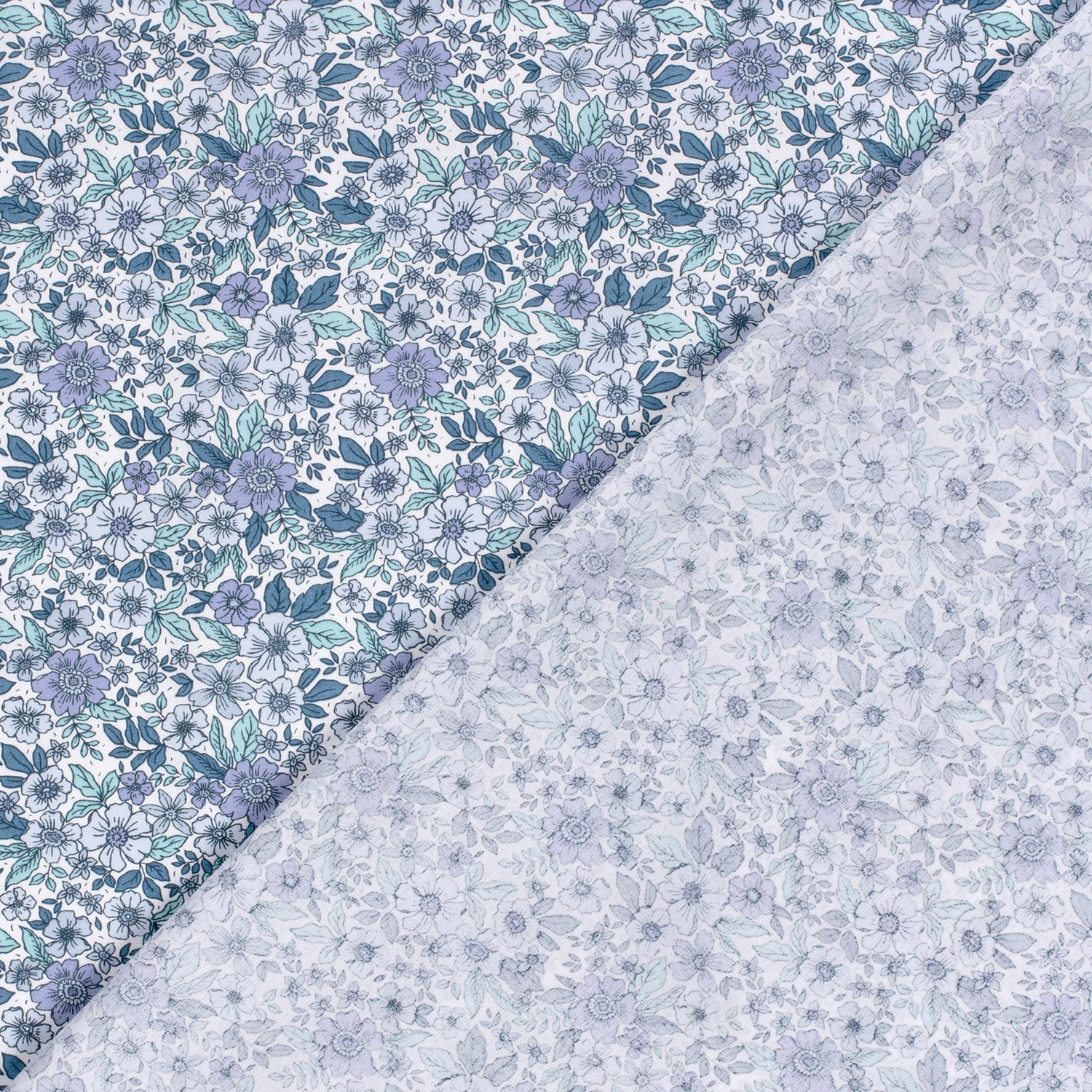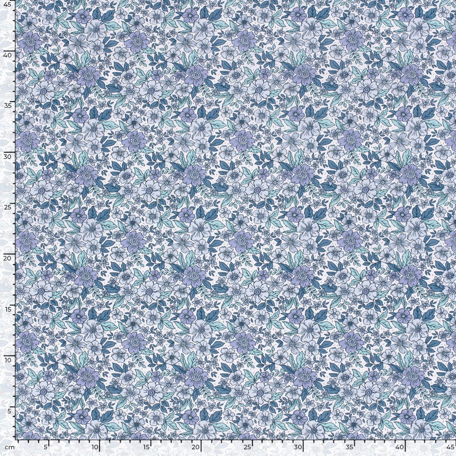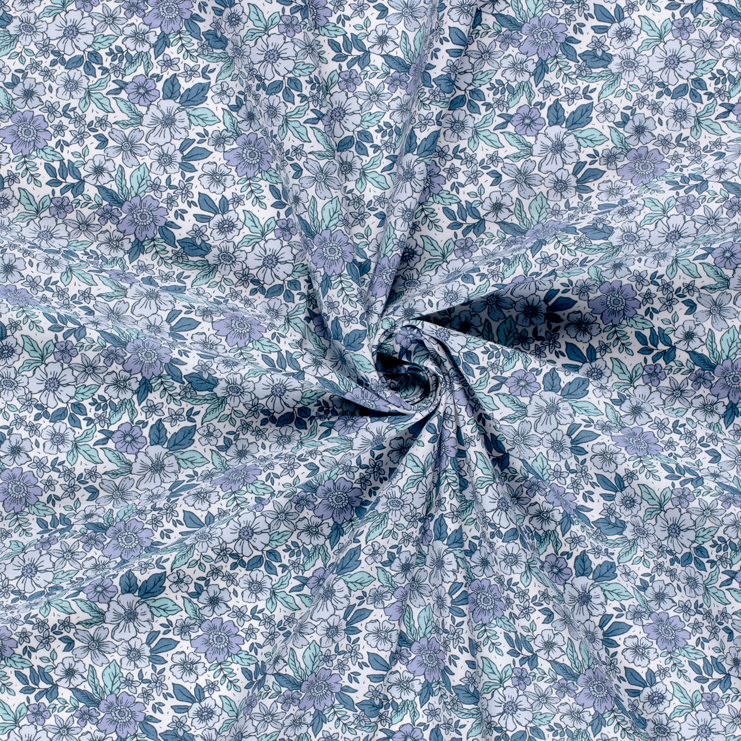 Popeline de Coton tissu imprimé fleurs Cobalt