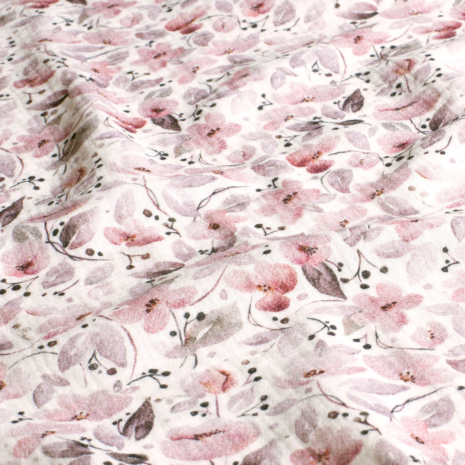 Mousseline stof digitaal bedrukt Bloemen Gebroken wit