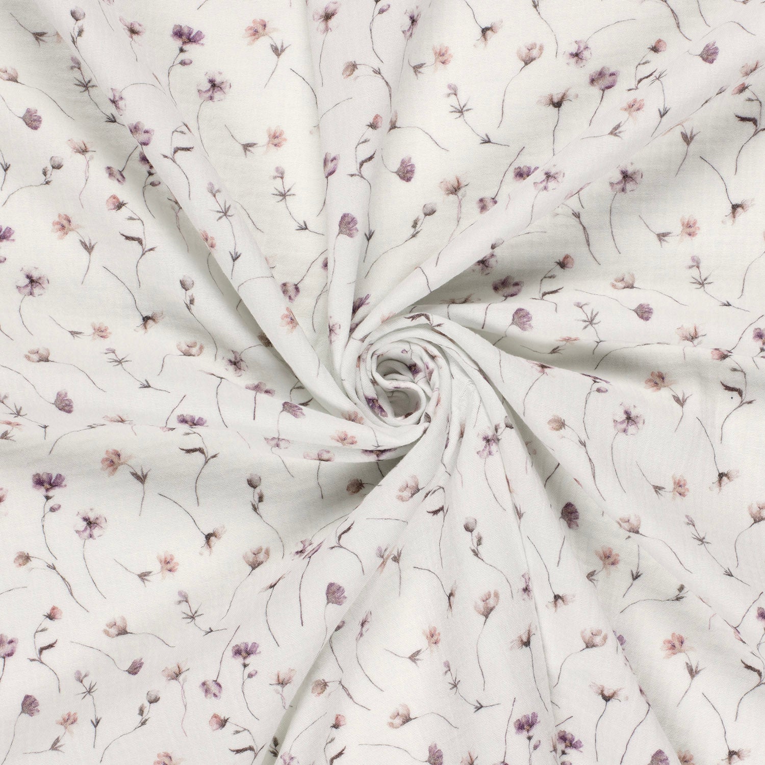 Mousseline stof digitaal bedrukt Bloemen Gebroken wit