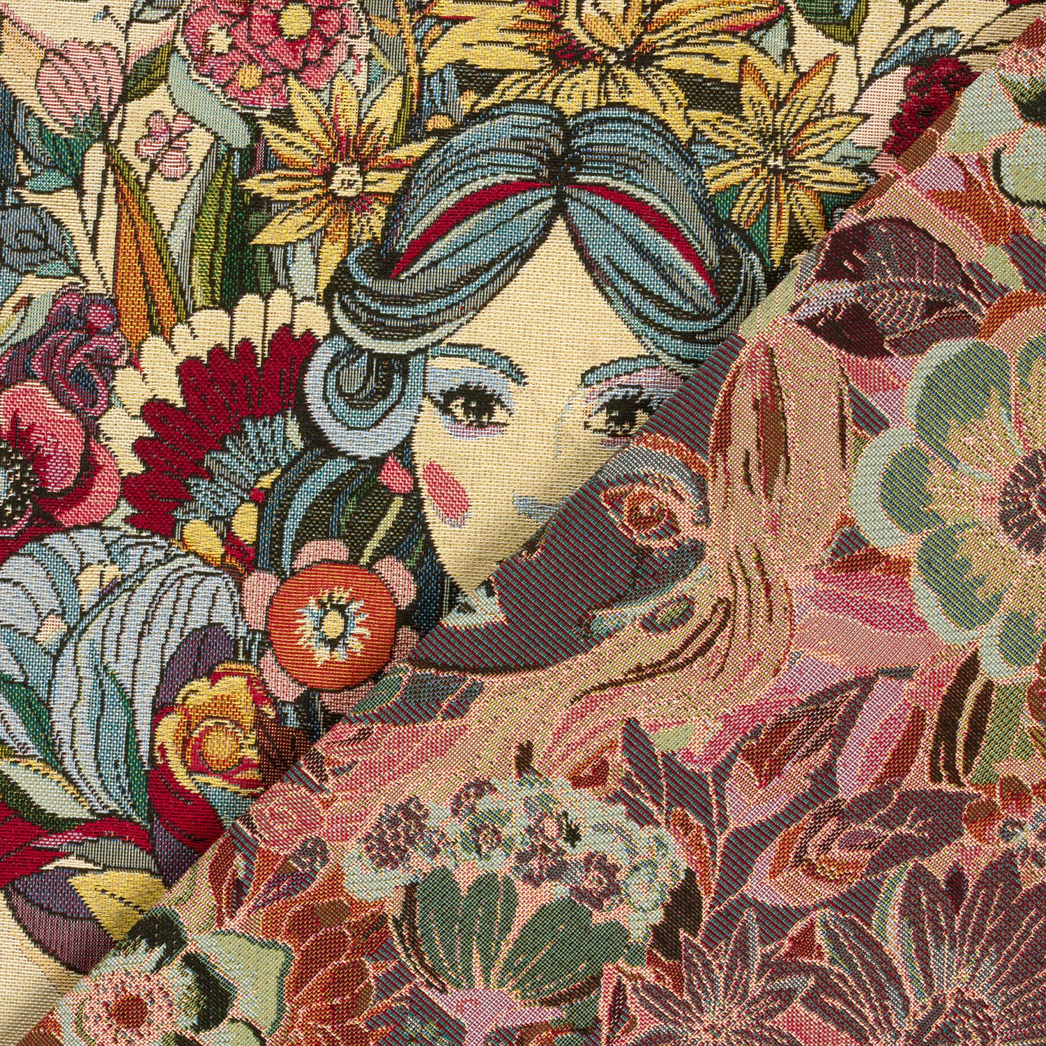 Gobelin stof jacquard Bloemen Rood