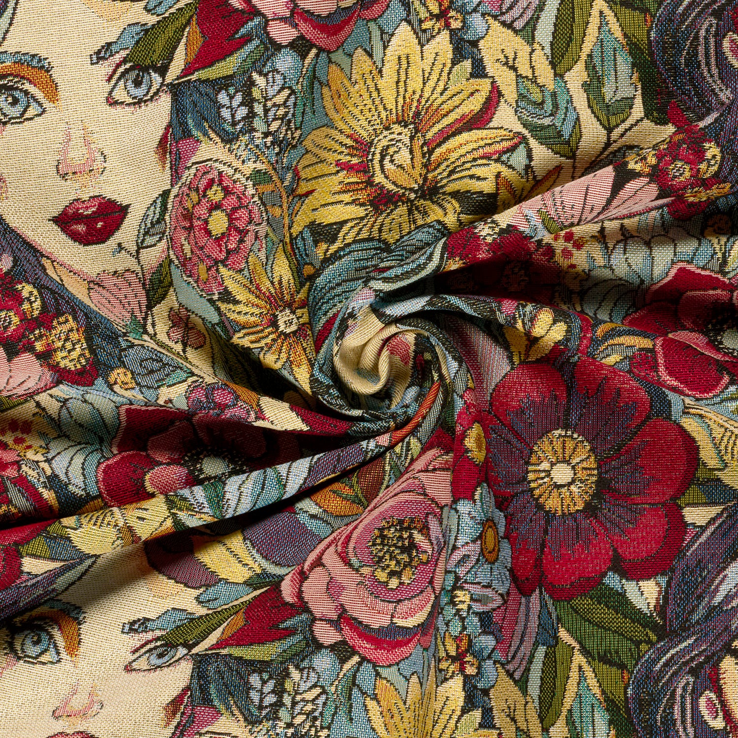 Gobelin stof jacquard met bloemen in de kleur rood (art.nr. 00101/015), maakt deel uit van onze decoratie stoffen collectie. Deze stof heeft een breedte van 140 cm en een gewicht van 345 g/m2.