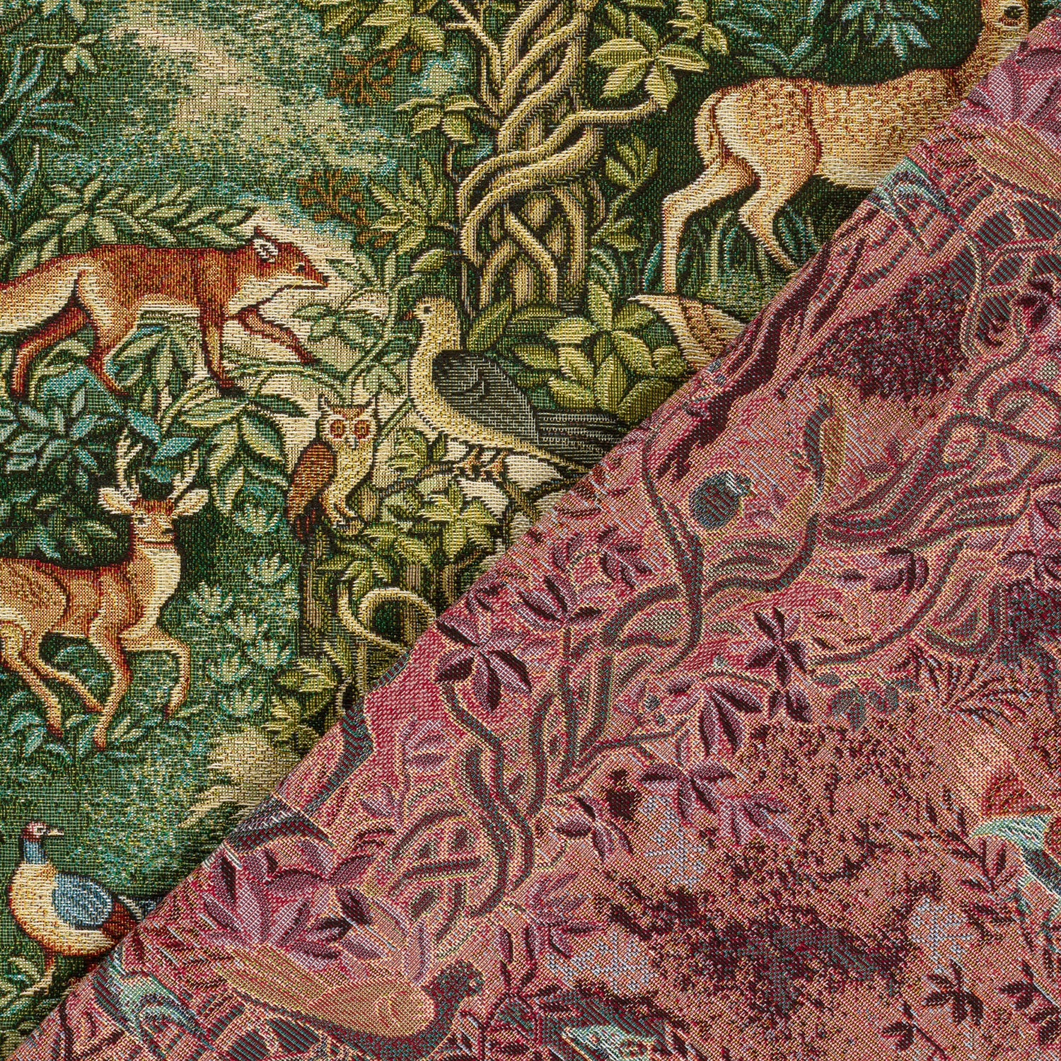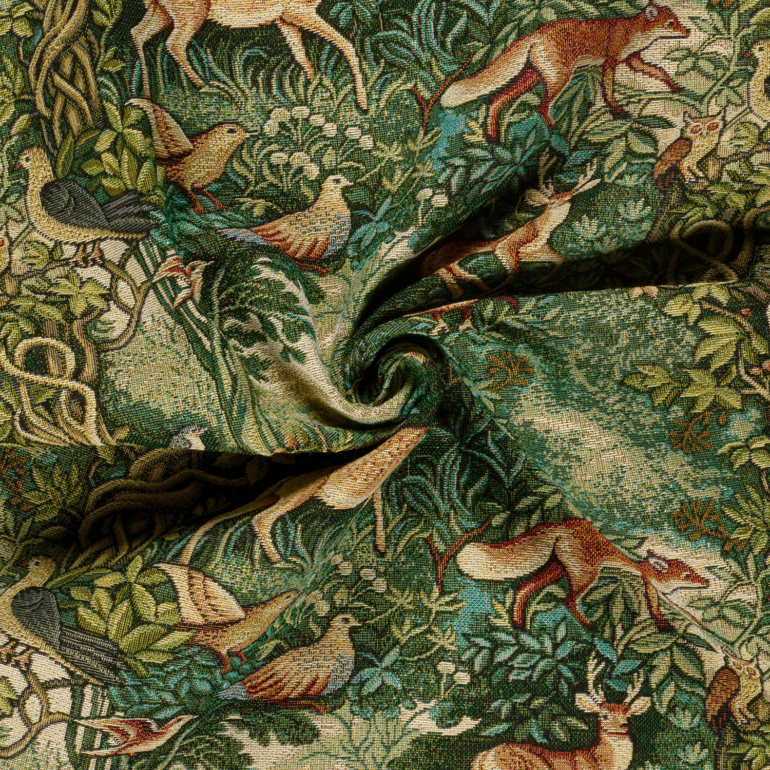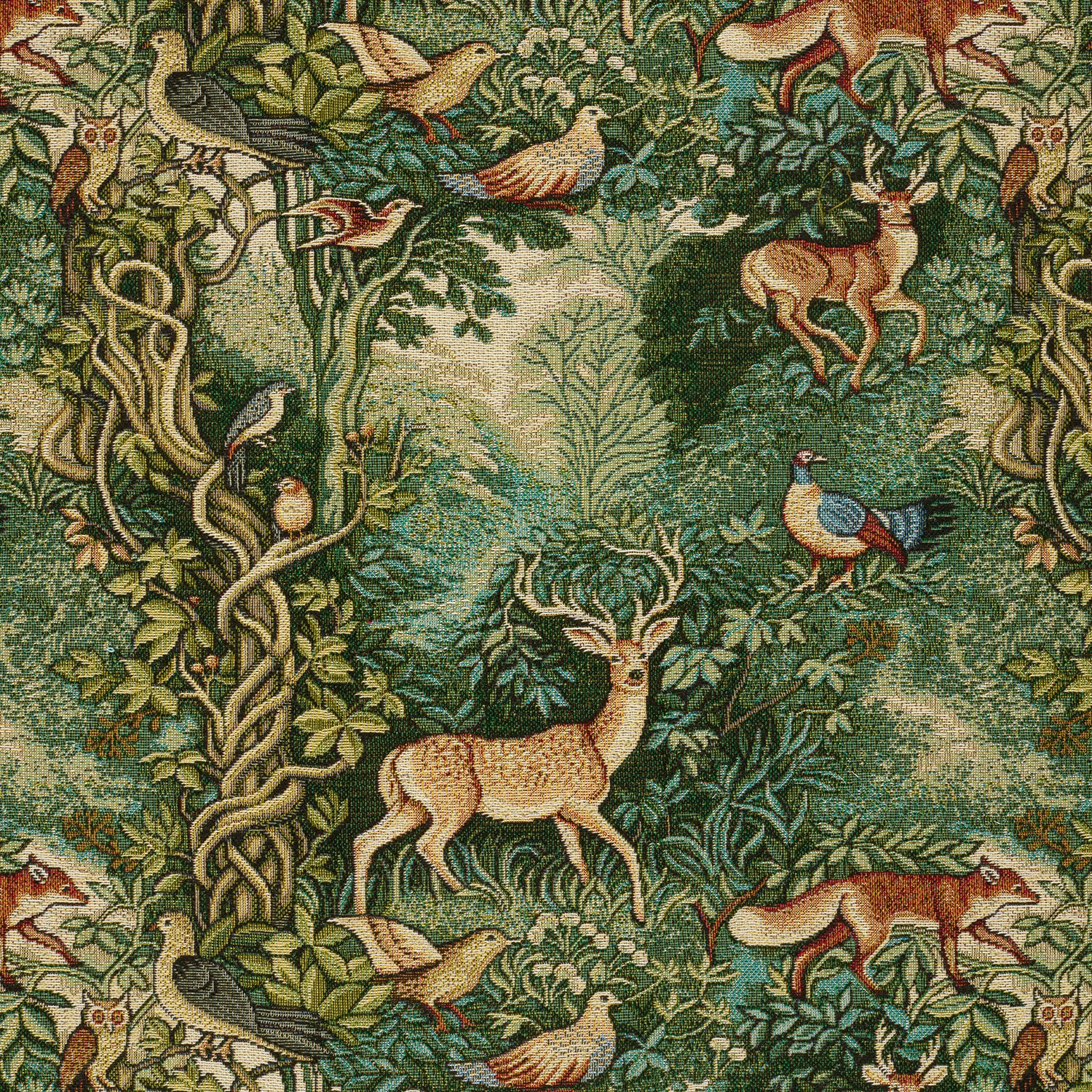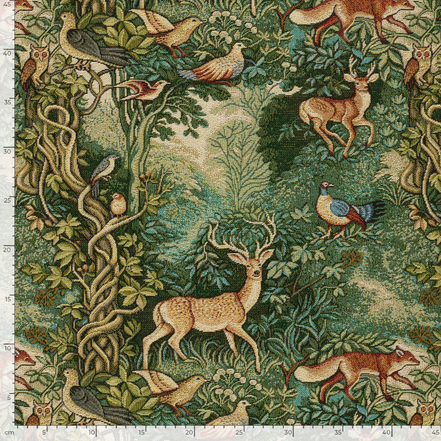 Gobelin stof jacquard met herten in de kleur donker groen (art.nr. 00107/02800107/028), maakt deel uit van onze decoratie stoffen collectie. Deze stof heeft een breedte van 140 cm en een gewicht van 345 g/m2.