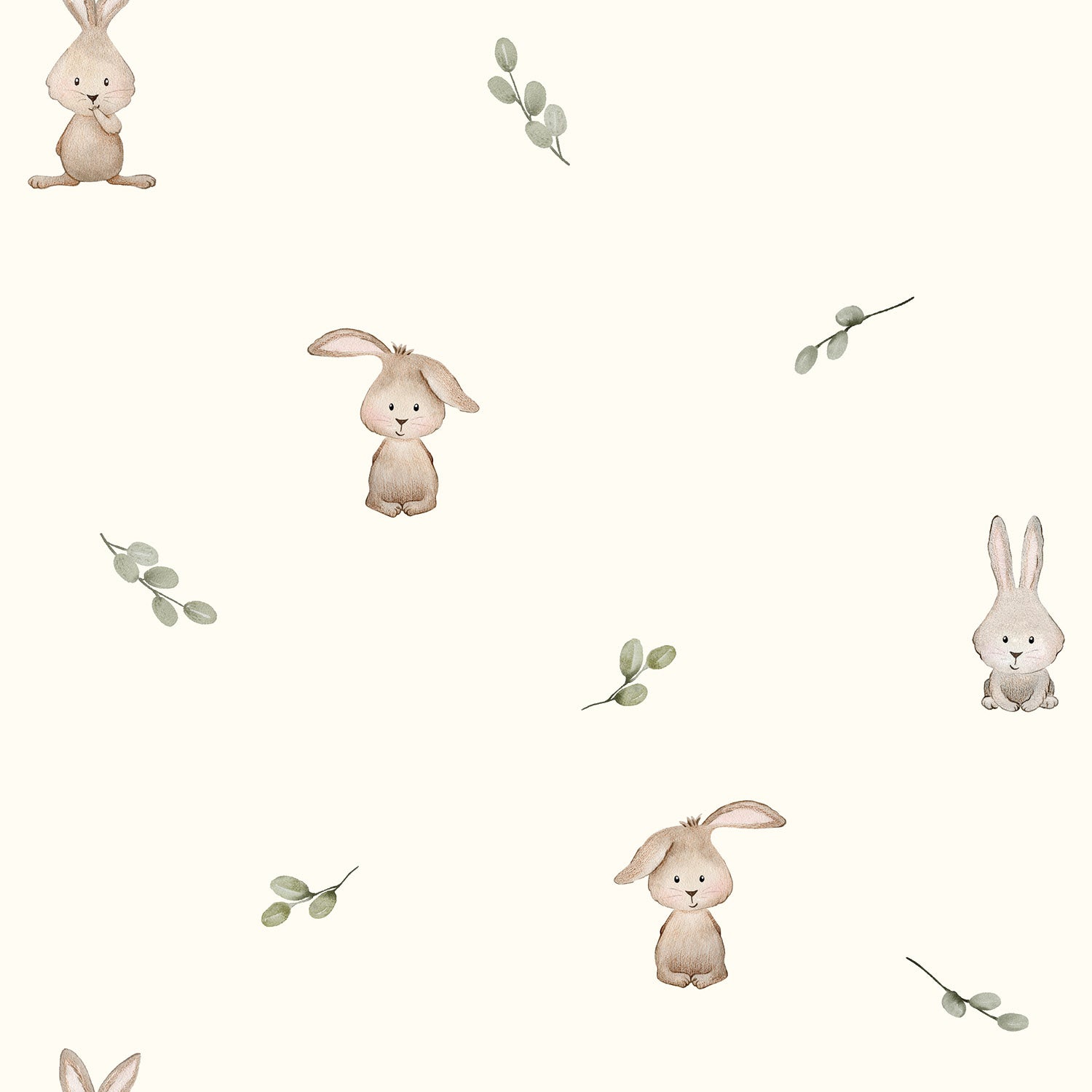 Katoen Jersey GOTS stof digitaal bedrukt Hazen Gebroken wit