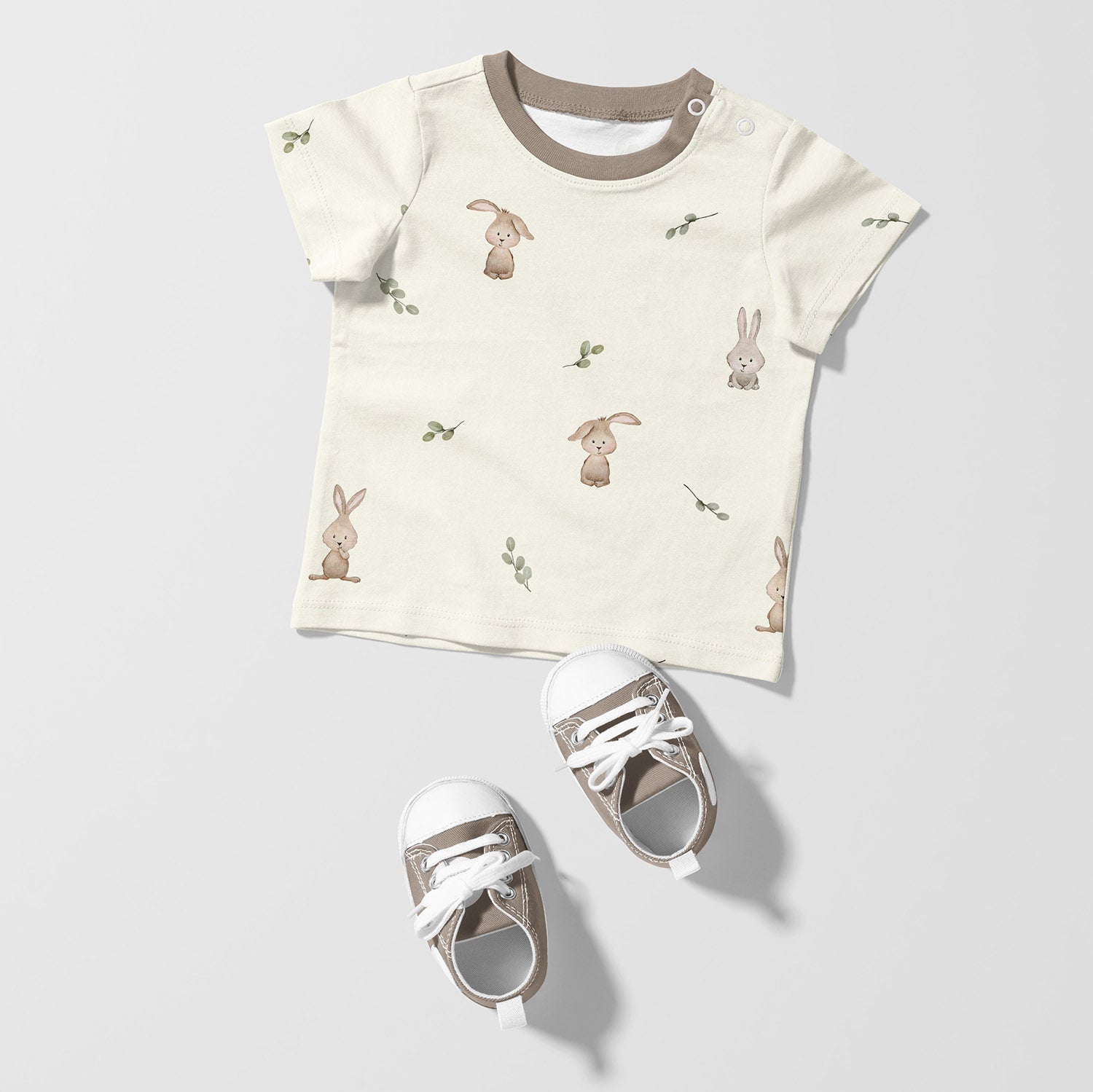 Katoen jersey gots stof digitaal bedrukt met hazen in de kleur gebroken wit (art.nr. 22319/051), maakt deel uit van onze kinderstoffen collectie. Deze stof heeft een breedte van 150 cm en een gewicht van 200 g/m2.