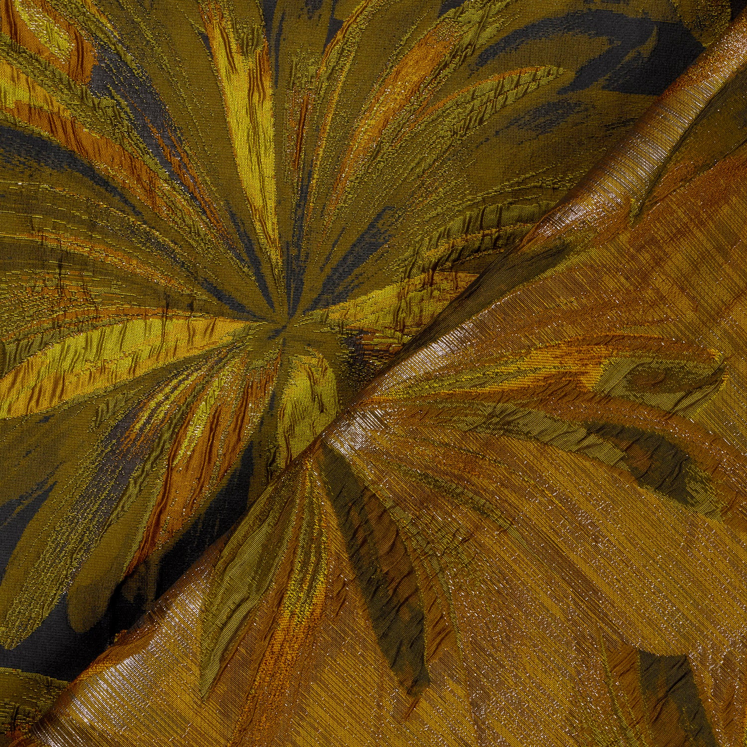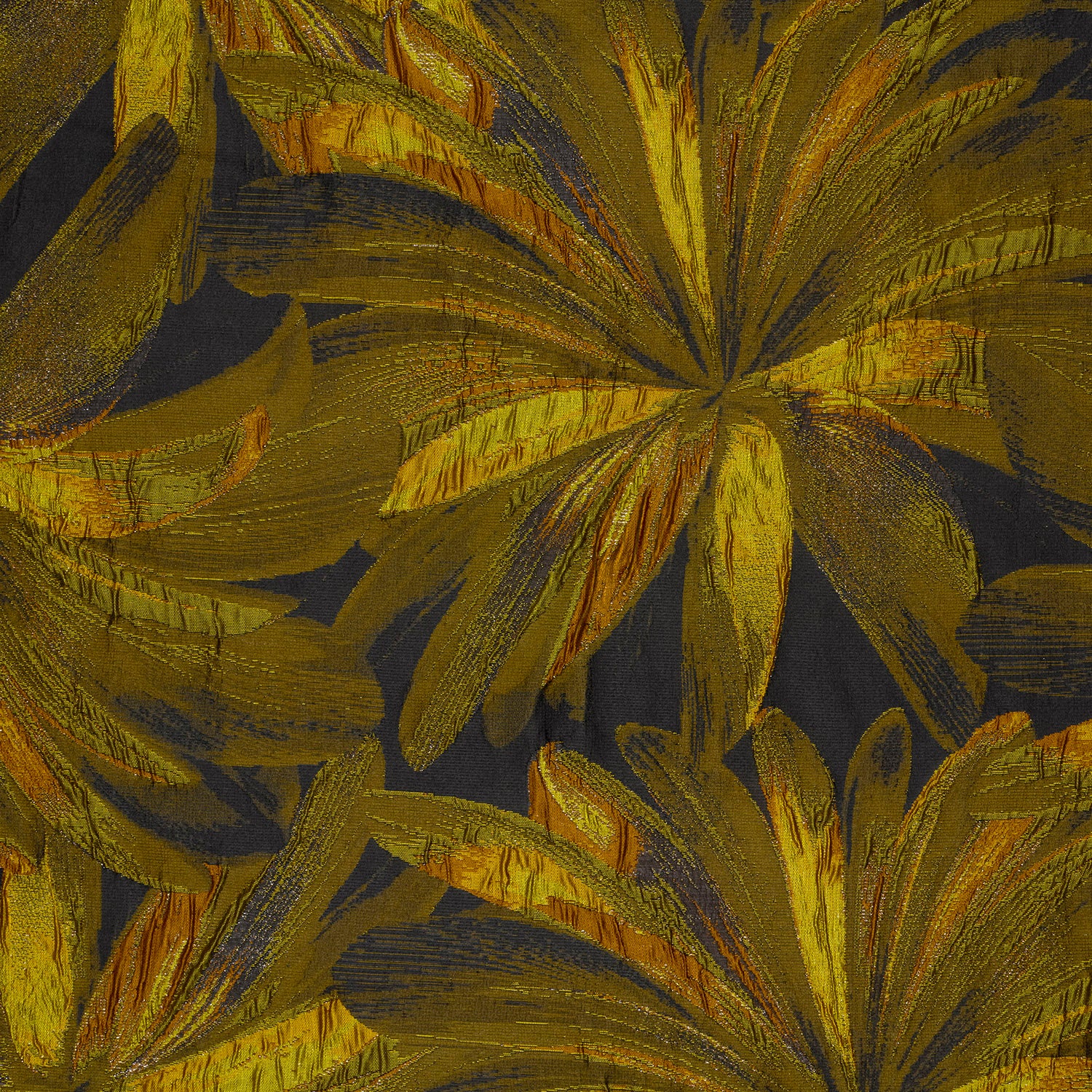 Jacquard stof Lurex Bloemen Oker