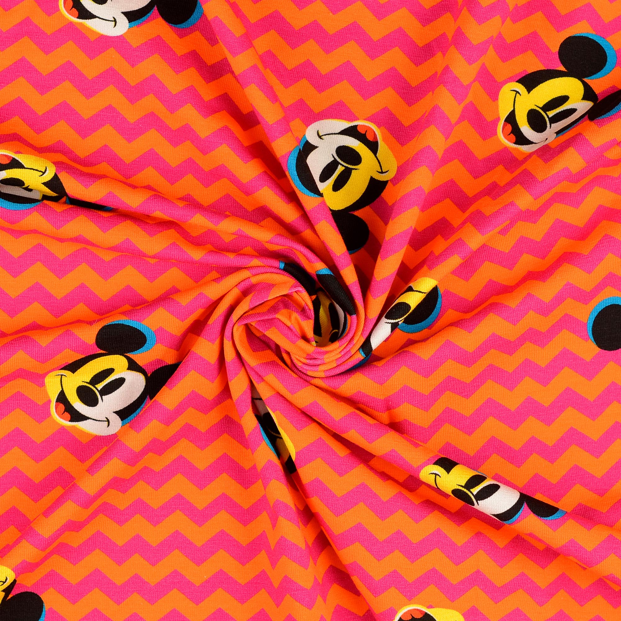 stof digitaal bedrukt met mickey mouse in de kleur roze (art.nr. 210767.0004), maakt deel uit van onze licenties collectie. Deze stof heeft een breedte van 150 cm en een gewicht van 200 g/m2.