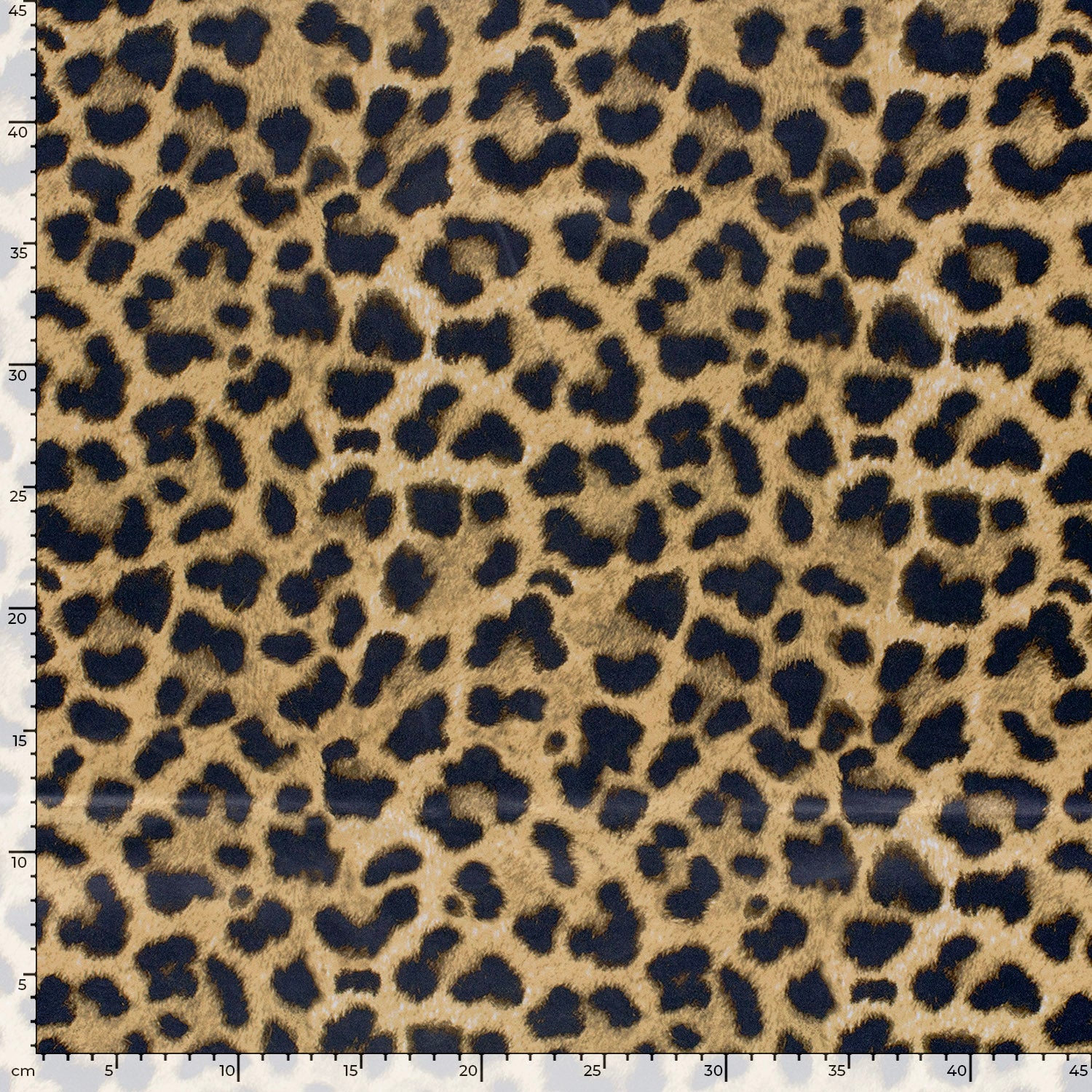 Suede wildleer stof bedrukt met luipaarden in de kleur camel (art.nr. 24125/053), maakt deel uit van onze modestoffen collectie. Deze stof heeft een breedte van 150 cm en een gewicht van 280 g/m2.