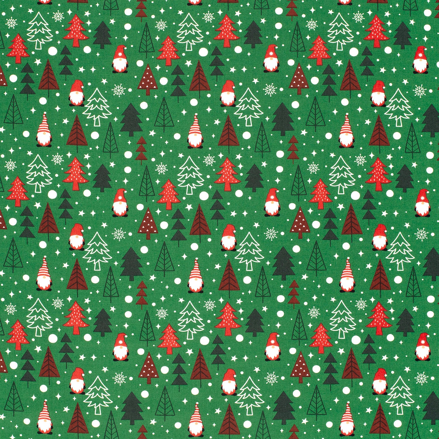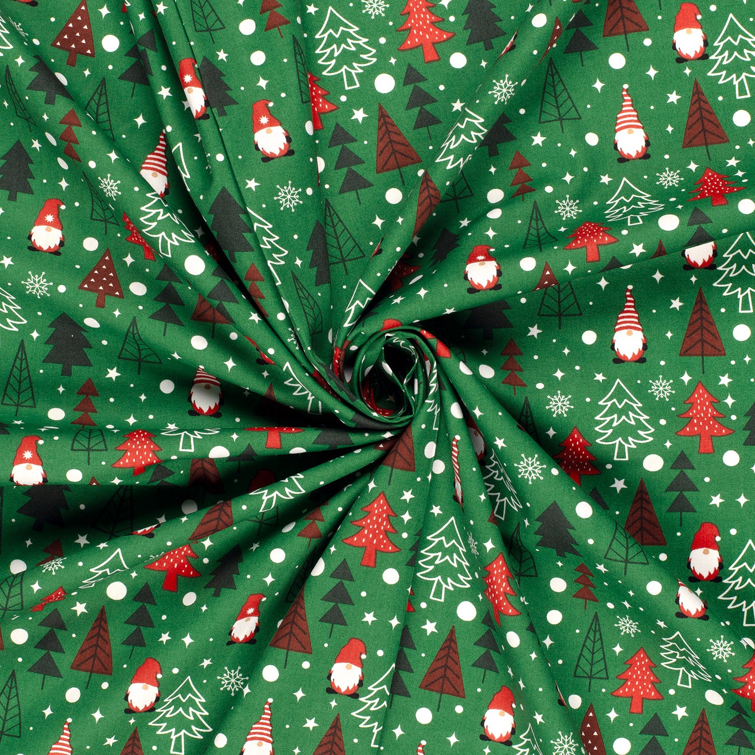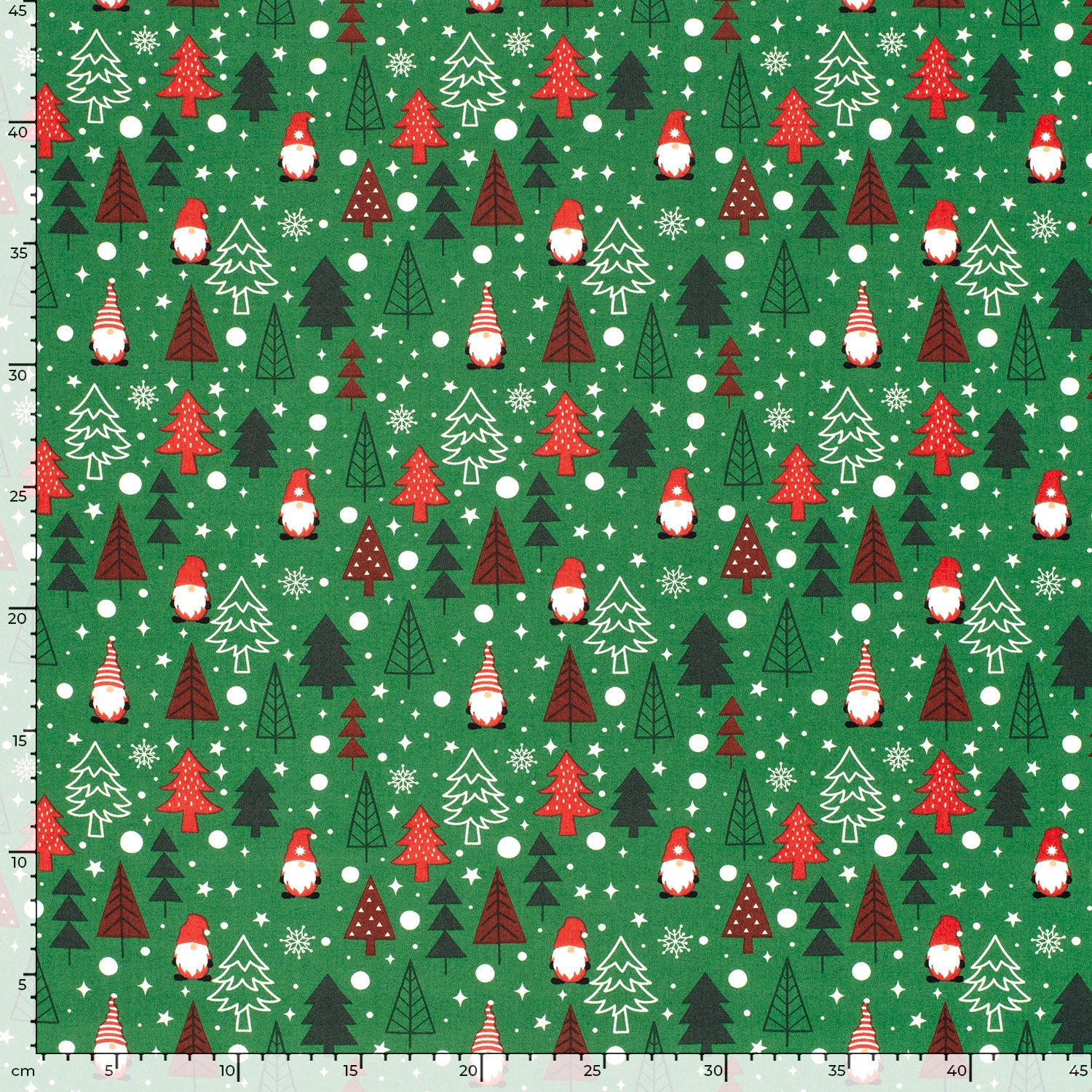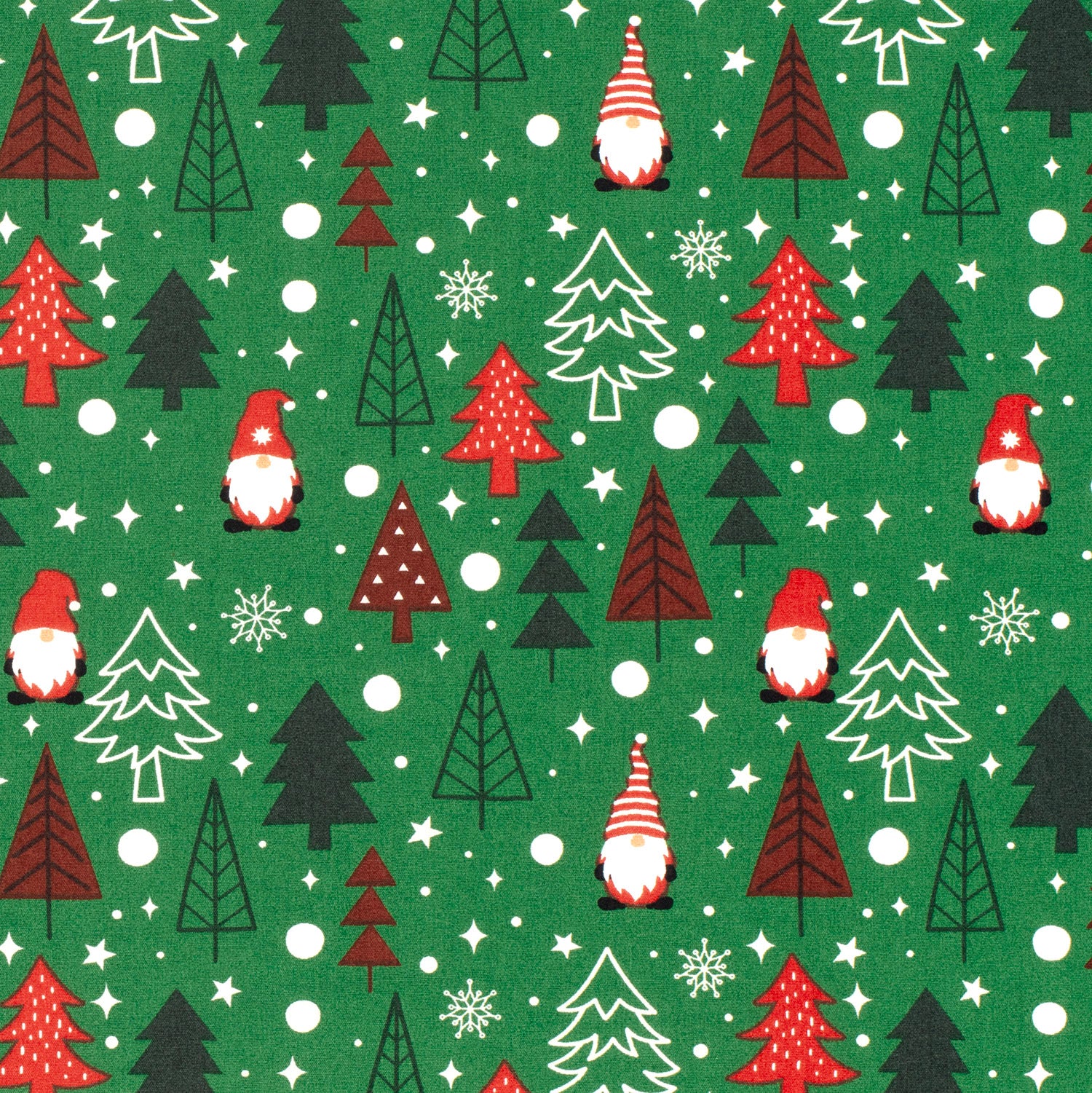 Katoen Poplin stof bedrukt Kerstbomen Groen