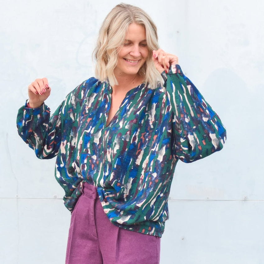 When I spotted the colors in this fabric, I knew it would be perfect for a fall inspired #luciablouse. t’s called ‘viscose nylon ottoman’, is super soft and has a subtle structure to it, very easy to work with 💙.