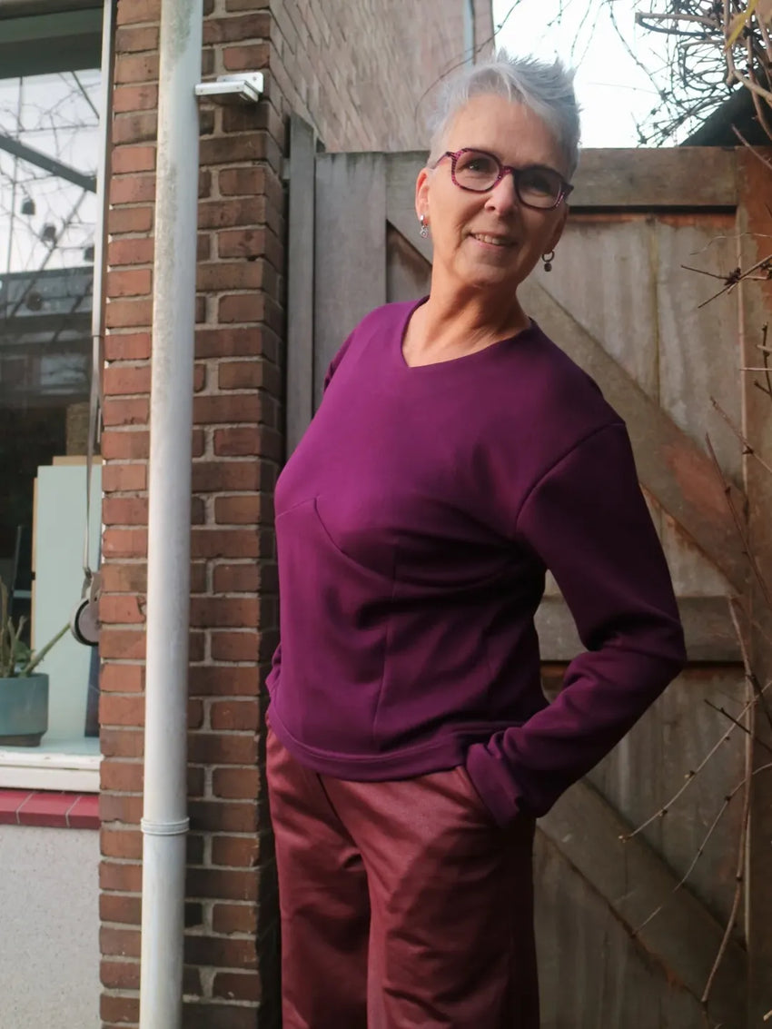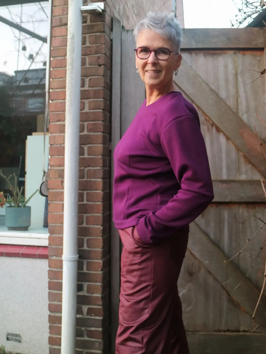 In elk geval ben ik klaar voor 2026 met deze nieuwe two-piece in de trend kleur van 2026, die ook los van elkaar te dragen is. En de stof, een zachte wol touch met een meer vilt achtige structuur. Lastig uit te leggen, heerlijk om te dragen en eenvoudig te verwerken.