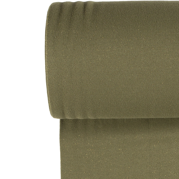 This original khaki green lurex cuff glitter fabric (art.nr. 16555/027) is part of our fashion fabrics collection. It has a width of 35cm and weight of 265g/m2.