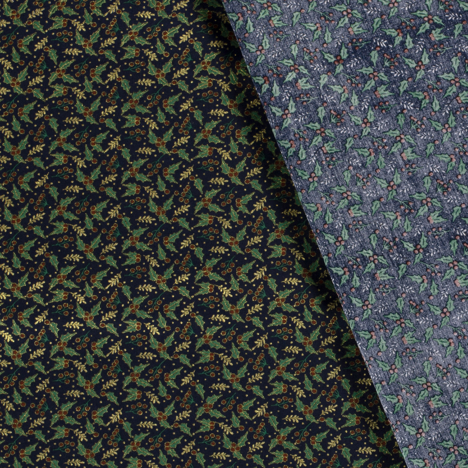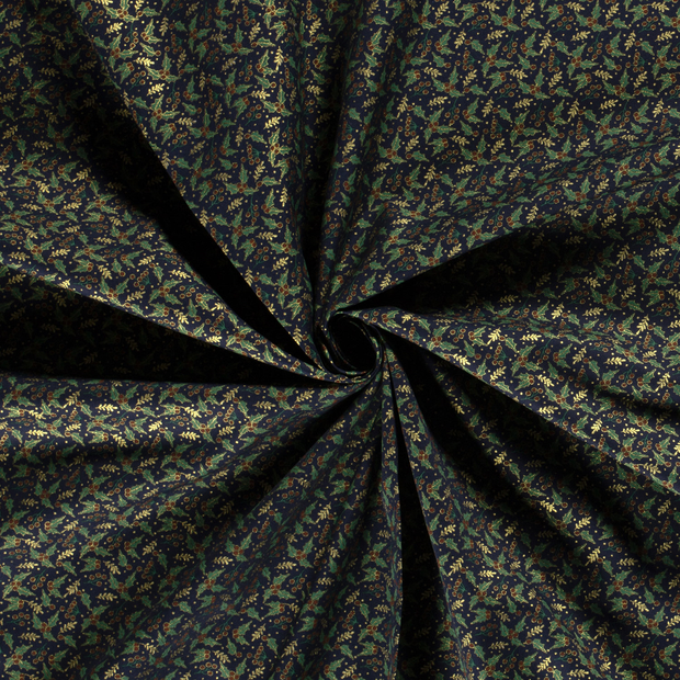 This "musthave" navy printed and foil cotton poplin christmas trees fabric (art.nr. 20721/008) is part of our decoration fabrics collection. It has a width of 145cm and weight of 110g/m2.